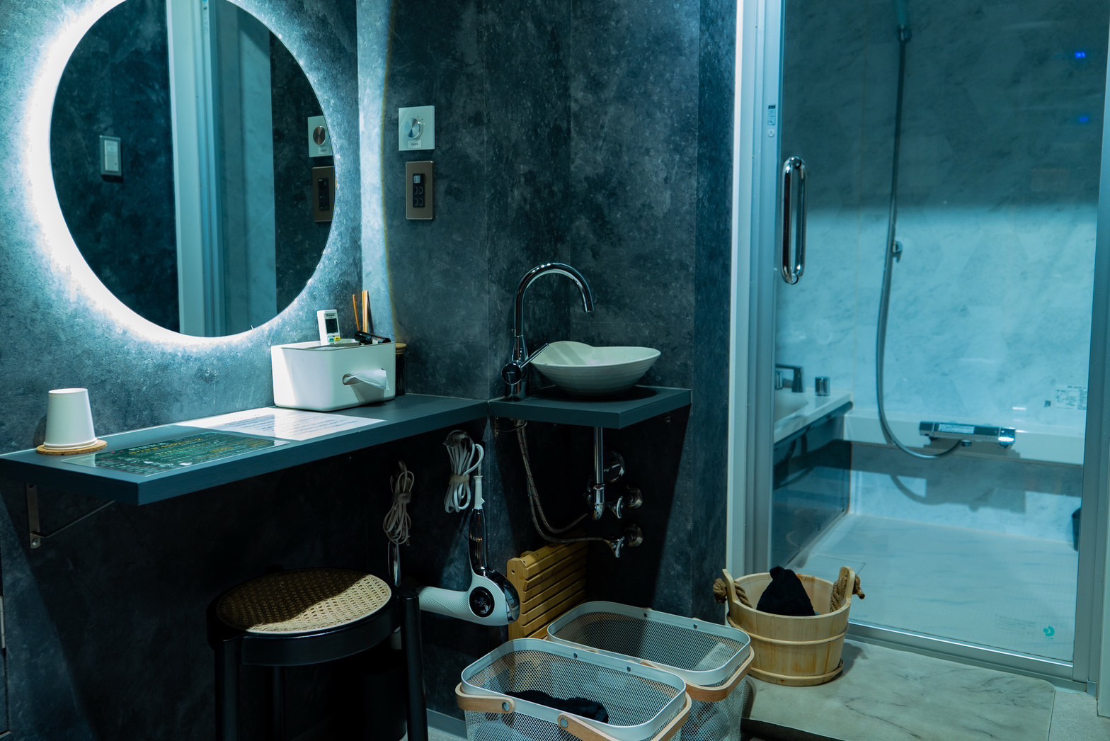 各部屋に備え付けのユニットバスがございます。どのコースでも水風呂はご利用可能です。
