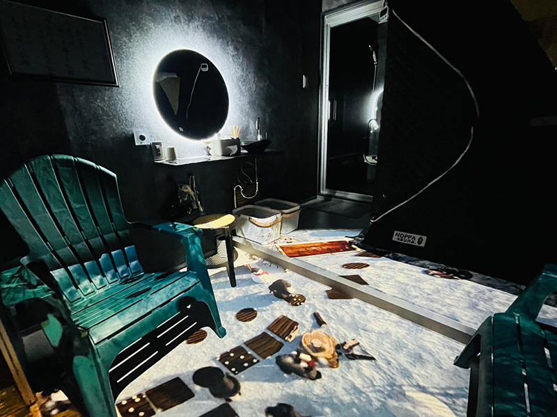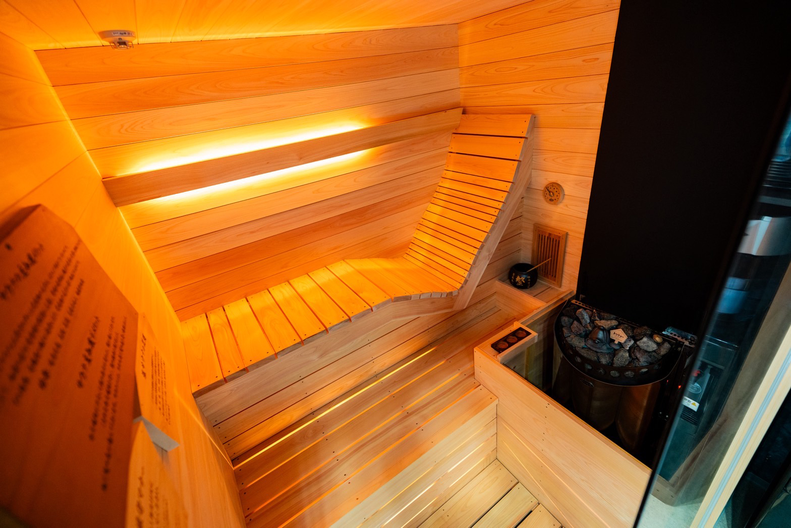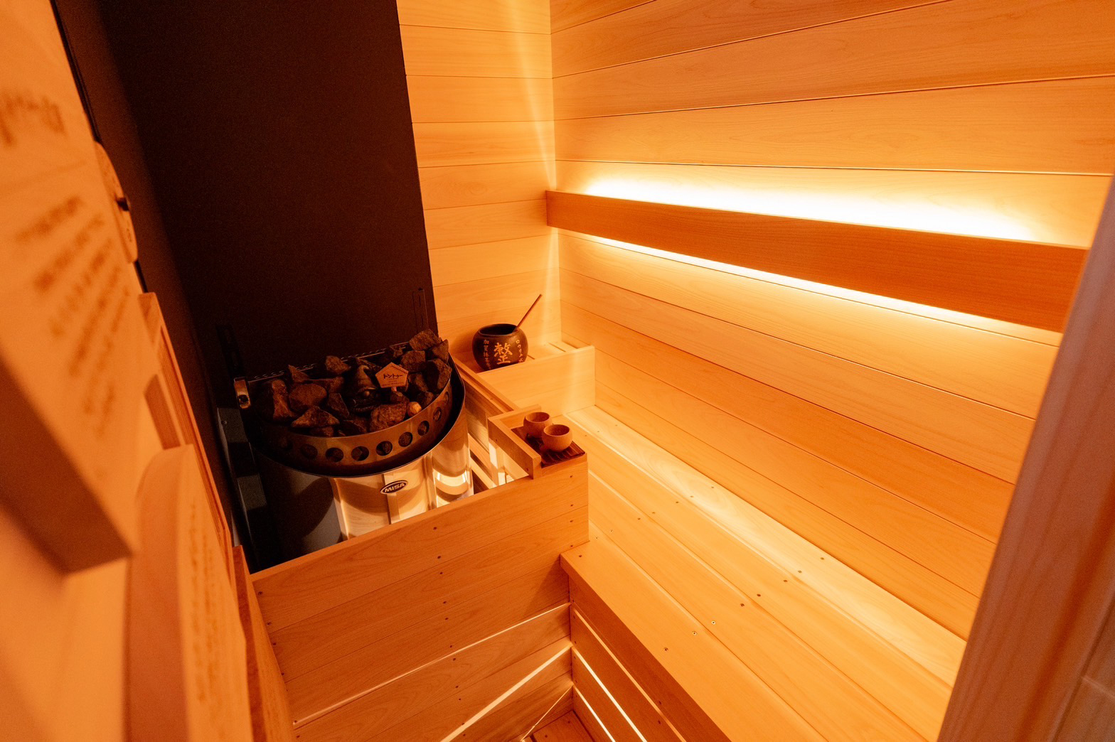 サウナ桶の水でセルフロウリュをお楽しみください。